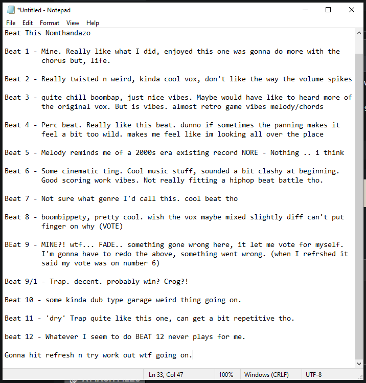 Beat 3 - @xoxo_daisy__ MAY illdiscord gang we run dis!!! Despite not chiptunin' this still gave me kinda retro game vibes, figured could be yours. Was close to voting this, but was in two minds about wanting to hear more of the vocals (tho I don't need someone to use them all) really nice tho. Congrats. illdiscord takeover!